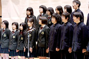 ■最優秀クラスの自信に満ちた歌声に 会場がひとつになって 石田副校長先生の「音楽を通して、一人ひとりの心を一つにしてほしい」という挨拶の後、コンサートが始まりました。 まずは校内合唱コンクール最優秀クラスの合唱から。仙台育英学園高等学校の外国語コースが手拍子をしながら「We're ALL IN THIS TOGETHER」を歌うと、聴いている他のクラスからも手拍子が始まり、まさに会場が一つに。楽しい雰囲気の中、コンサートが進行していきました。