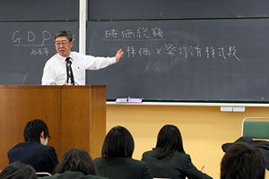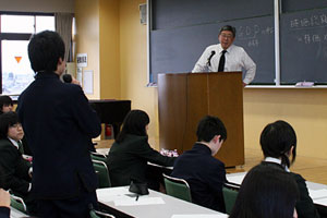 その中で、社会人に求められるのは「知識・行動・感性」であることを具体例を示しながら説明。また、「情報とお金は瞬時に動く」「会社にとって、お金は本当に大事」といったリアルな内容もあり、生徒たちはメモをとりながら、現代社会の状況を改めて認識した様子。