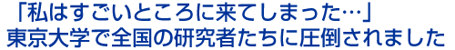 | 「ただただすごい! 年齢関係なく、みんなが研究者という感じ。とにかく感動しました!!」6年生の早坂さんはとても嬉しそうに話しました。 8月16日(月)〜18日まで東京大学で行われた『未来の科学者養成講座 第一回全国受講生発表会』に早坂さんは参加し、自身の実験・実習の成果を発表してきました。 |