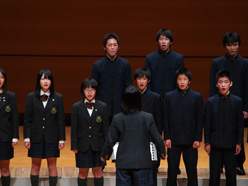 合唱コンクールの部では、クラスごとに一致団結したハーモニーを響かせてくれる『合唱』と、各クラス代表の2人が自由曲の詞を読みあげる『朗読』の発表が行われました。1〜3年生の前期課程、4〜5年生の後期課程に分かれての発表でした。