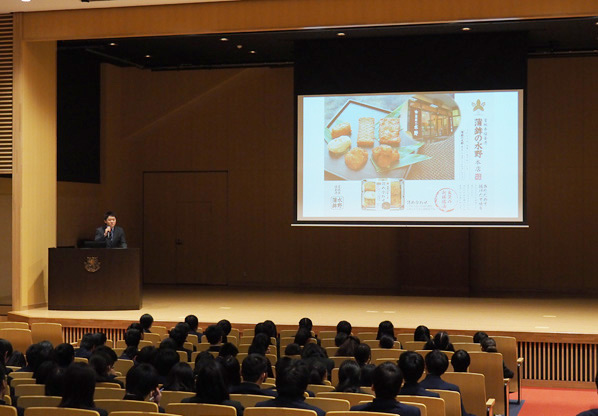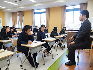 理学療法士として活躍する阿部さんは、患者さんの症状を例に「この場合どうしたら良いと思いますか?」と在校生に問いかけながら話をしてくれました。また、県庁でお仕事をされている山根さんは「自分が関わった仕事について、県民の方々の声を聞くと本当に嬉しい」と仕事のやりがいについて話し、水野さんは全国を営業で飛び回る忙しい日々をユーモアたっぷりにお話してくれました。