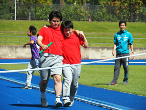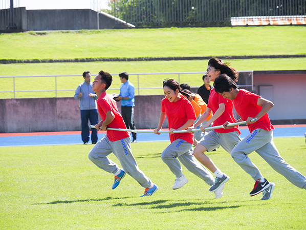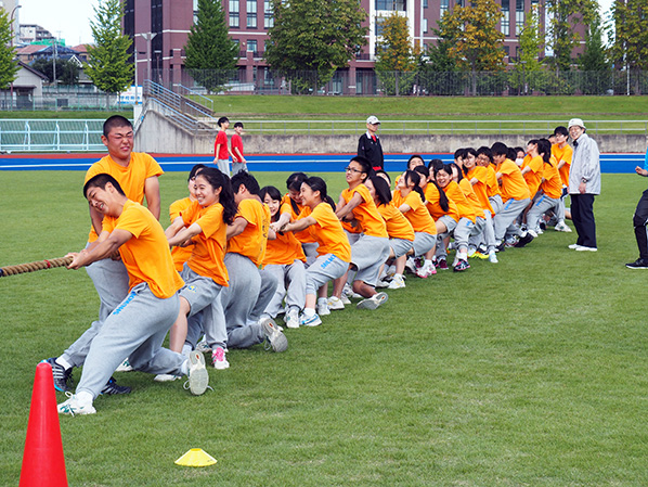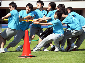 綱引きにしっぽ取り、各学年選抜リレーなど、行われたのは全部で8種目です。競技開始前に円陣を組み、先輩と後輩間で声を掛け合ったり、競技中にも広い会場に響きわたるような熱の入った声援が飛び交いました。
