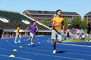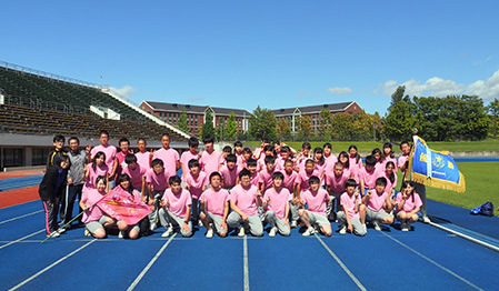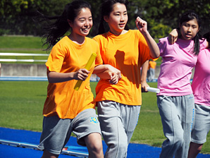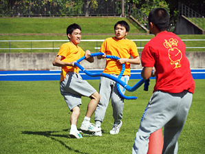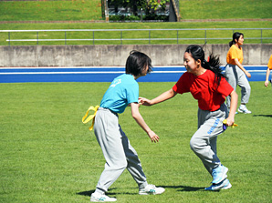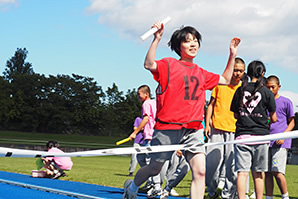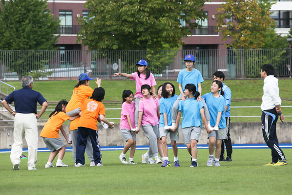 ピンク・紫・赤・青・オレンジの5チームに分かれ、チームオリジナルのTシャツを着用した生徒たちは元気いっぱいに駆けまわり、汗を流していました。