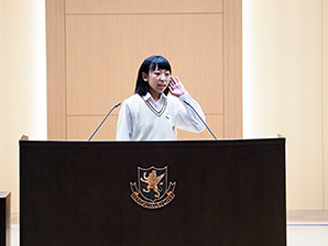 審査の結果、最優秀賞に選ばれたのはギリシャ神話の妖精の話である「Echo」を強弱部分を丁寧に、感情を込めて話した2年生の加藤さんです。