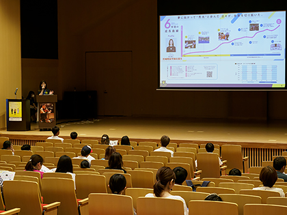 秀光中学校の2024年度入試の説明や、過去問に挑戦することができる「入試対策」の第1回目を、8月5日(土)に開催。当日は大変多くの方に参加していただきました。秀光生が司会進行をつとめた全体会では、生徒会長のあいさつに続き、石田教頭先生が秀光の特色について、入試広報部の小林先生が入試概要の説明を行いました。その後、中講義室と大会議室の2グループに分かれて、過去の入試問題に挑戦しました。